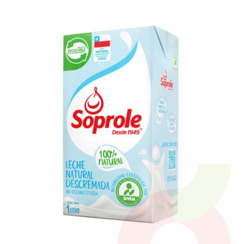 Leche Natural Descremada Soprole 1Lt